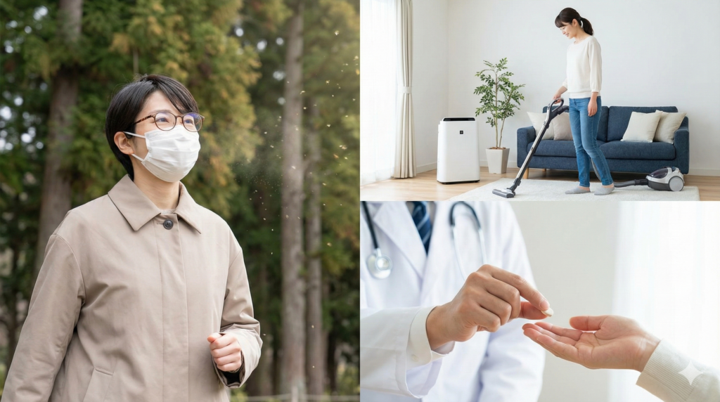 アレルギー検査の数値、特に特異的IgE抗体のクラスが高い人が日常生活で意識すべきは、「総暴露量(体に入る花粉の合計量)」をいかに減らすかという点に尽きます。数値が高いということは、免疫システムがスギ花粉に対して厳重な警戒態勢を敷いている状態です。そこに大量の花粉が侵入すれば、免疫細胞が総攻撃を仕掛け、激しい炎症反応が引き起こされます。これを防ぐためには、数値に基づいた徹底的な回避行動が必要です。