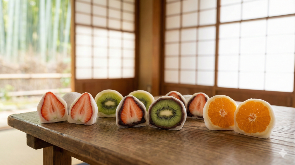 京都という街は、千年の歴史を誇る古都としての顔を持ちながら、常に新しい文化や流行を取り入れ、昇華させていく革新的な側面も併せ持っています。特に食の分野、とりわけスイーツに関しては、伝統的な和菓子と現代的な感性が融合した「ネオ和菓子」とも呼べるジャンルが確立されつつあります。その中でも、近年爆発的な人気を博し、一過性のブームを超えて定着しつつあるのが「フルーツ大福」です。瑞々しい旬の果物を、上品な白餡と柔らかな求肥で包み込んだこの菓子は、味覚の素晴らしさはもちろんのこと、その美しい断面が視覚的にも楽しめるとして、SNSを中心に大きな話題を呼び続けています。