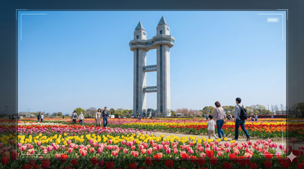 - ①開花状況のリアルタイム確認(質と量の把握)木曽三川公園の最大の魅力の一つは、四季折々の大規模な花畑です。特に木曽三川公園センターでは、春に約150品種・約30万球のチューリップと、約40万本のネモフィラが同時に咲き誇る「チューリップ祭」が開催されます。秋には約150万本のコスモスが園内を彩ります。これほど大規模であるがゆえに、利用者は「今、まさに見頃か?」「全体のうち、何割くらい咲いているのか?」「色あせ始めていないか?」という「質」と「量」の情報を、写真の切り抜きではなく、**広角の「映像」**で確認したいと考えます。公式SNSの写真が「ベストショット」であることは理解しつつも、全体感を把握するためにライブカメラの映像を求めるのです。