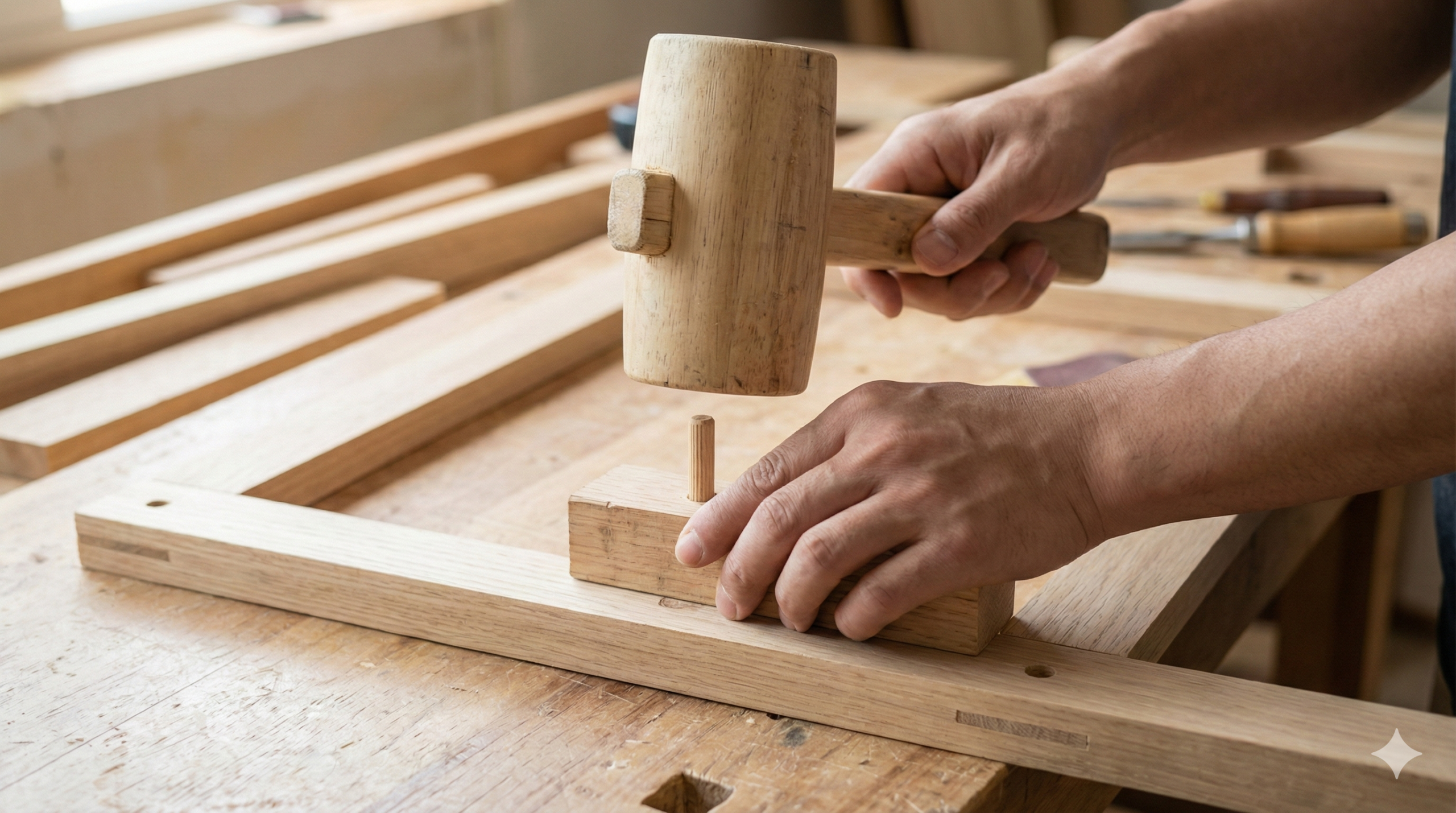 通販などで購入した組み立て式家具(フラットパック家具)には、木ダボを打ち込む工程が頻繁に登場します。これらのダボは、穴に対して適度な摩擦で入るように設計されていますが、最後の一押しには軽い打撃が必要です。