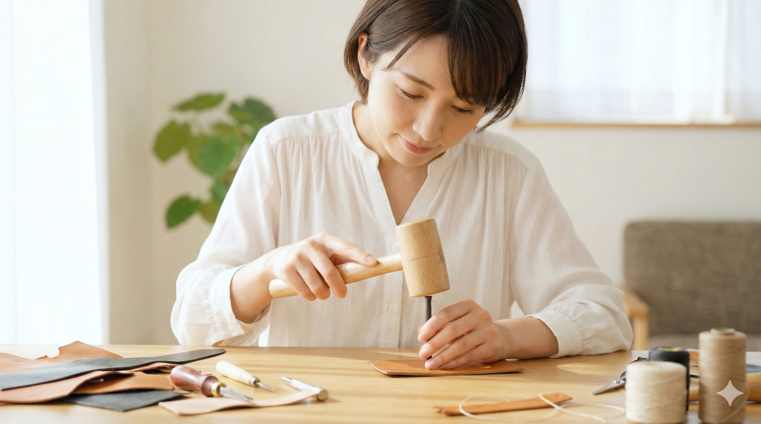 木工DIY以外にも、木槌が活躍する分野があります。それが「クラフト」全般、特に「レザークラフト」です。
