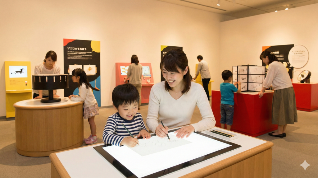 ・パラパラアニメや視覚玩具の展示を通じてアニメーションの原理を直感的に理解できる