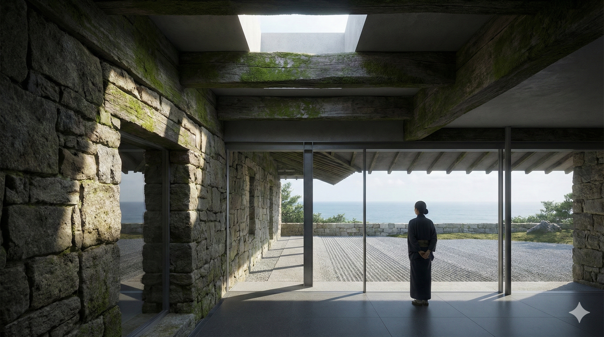 ここでの凄みは、近代建築が追求してきた「均質性」や「効率性」へのアンチテーゼです。現代の新建材は施工が簡単で安価ですが、古くなるとただ劣化してゴミになります。対して、杉本が選ぶ素材は、時間が経つほどに美しくなる「経年変化」を前提としています。