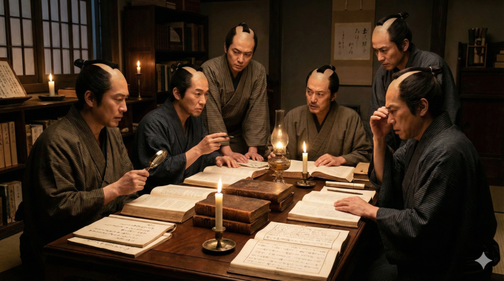 翌日から、前野良沢の家に集まり翻訳作業が開始されましたが、それは想像を絶する難行でした。当時、本格的な蘭日辞書は存在せず、彼らが持っていたのはごくわずかな単語帳のようなものだけでした。オランダ語の文法も単語の意味もわからない状態で、未知の言語を解読しなければならなかったのです。