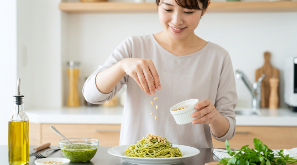 具体例として、軽くローストした松の実はサラダやパスタに振りかけるだけで、料理全体の風味を格段に引き上げる効果があります。