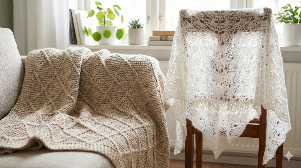 松編みとシェル編みの構造的な違いは、そのままデザイン特性や作品の用途に直結します。編み地のテクスチャやドレープ性の違いを理解することで、それぞれの編み方の持つ魅力を最大限に引き出すことができます。