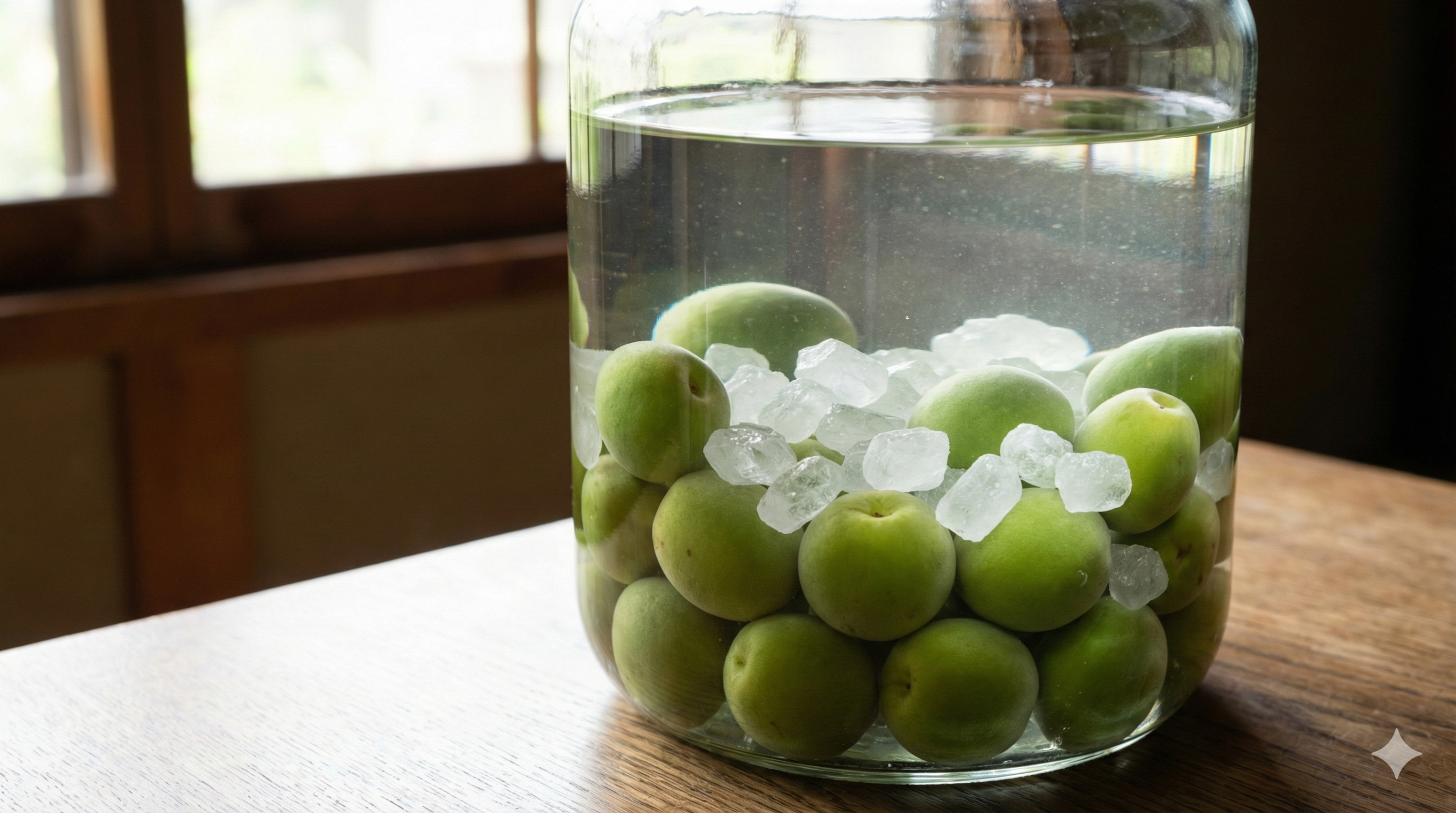 ここで重要なのは「氷砂糖」を使用することです。上白糖やグラニュー糖でも作ることは可能ですが、氷砂糖はゆっくりと時間をかけて溶けていく性質があります。これにより、瓶の中の浸透圧が徐々に高まり、梅の実の水分とエキスがゆっくりと外側に引き出されます。急速に砂糖が溶けてしまうと、梅の表面だけがシワシワになり、内部のエキスが十分に出ないまま終わってしまうことがあります。じっくりとエキスを抽出するために、氷砂糖の溶解速度が重要なのです。