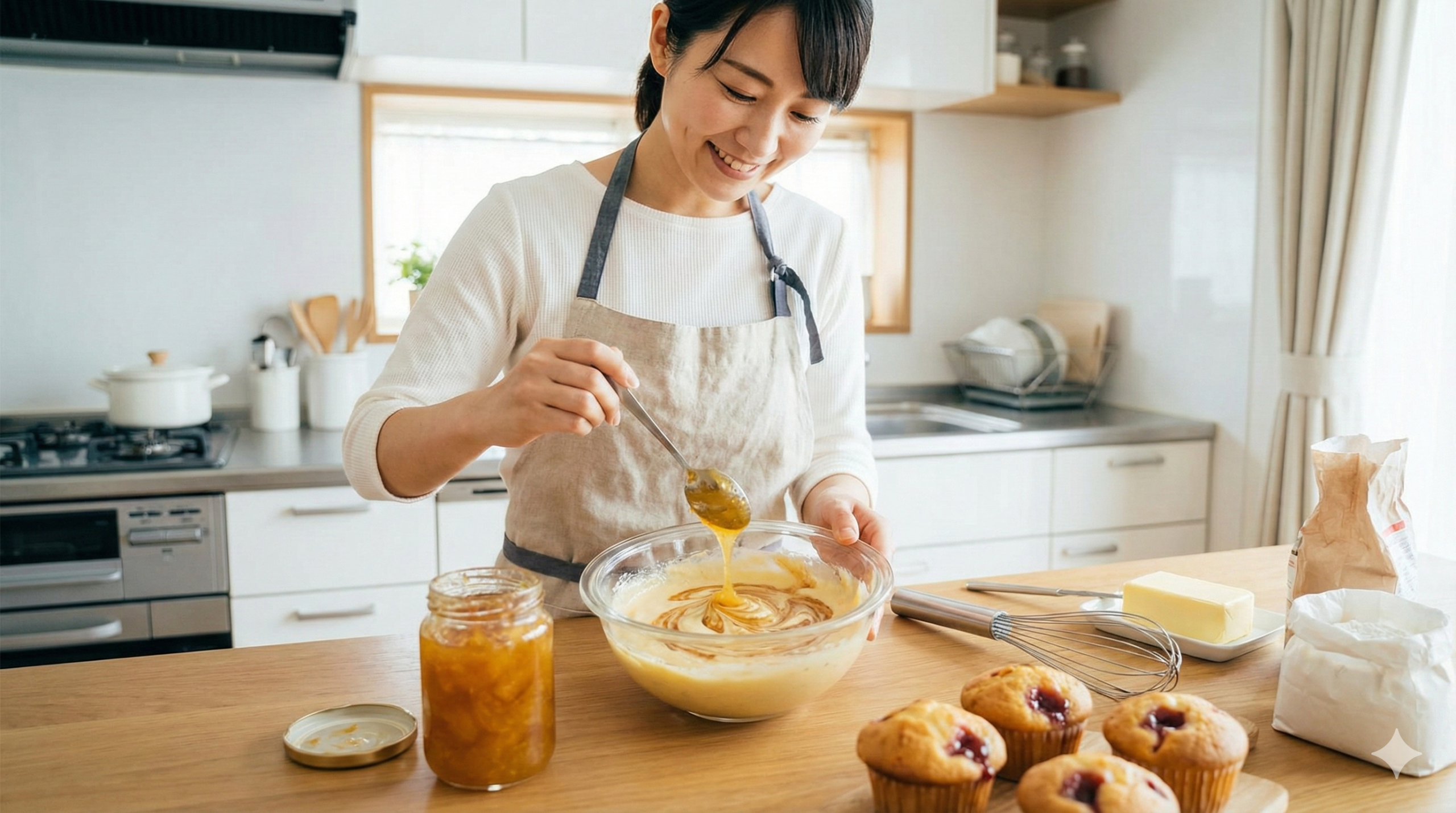 梅ジャムがお菓子作りに適している最大の理由は、その「酸味」と「ペクチン」にあります。梅に含まれる豊富なクエン酸は、甘いお菓子に爽やかなアクセントを加え、味が単調になるのを防ぎます。また、加熱によってとろみがついた梅ジャムは、生地に混ぜ込んだり、トッピングとして使用したりする際に非常に扱いやすいテクスチャーを持っています。ここでは、特別な道具や複雑な工程を必要としない、手軽に挑戦できる活用法について詳しく見ていきましょう。