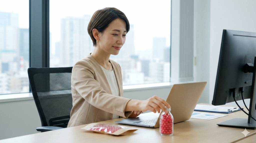 現在販売されている梅仁丹の多くは、チャック付きのパウチタイプや、スタイリッシュなボトルタイプが主流です。これは、オフィスや通勤途中で手軽に摂取したいという現代人のライフスタイルに合わせた形状です。昔ながらの瓶入りや笛付きケースは見かけなくなりましたが、その分、携帯性や保存性が向上しています。