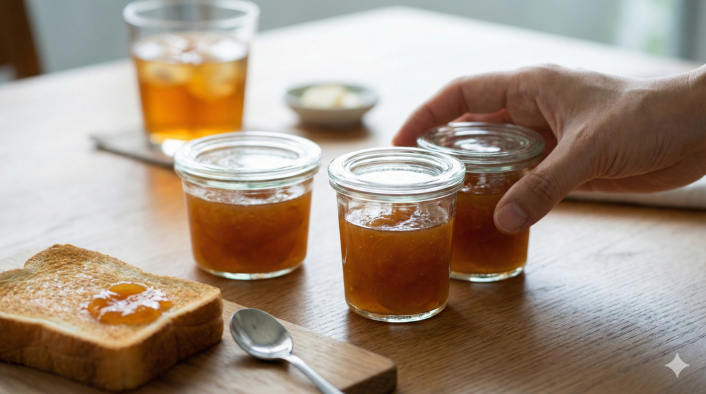この密閉工程において、もしジャムの中にアルコール成分が残っていた場合、密閉された空間内でアルコールが揮発し、瓶内の上部空間(ヘッドスペース)にアルコール蒸気が充満することになります。これはカビの発生を抑制する上でプラスに働く可能性があります。実際、自家製の保存食において、表面に焼酎を吹きかけてから蓋をするという手法があるように、微量のアルコール気体は保存性を高めます。しかし、開封後はアルコールが揮発し、空気に触れることになるため、冷蔵保存が必須となります。梅酒の梅ジャムは、通常のジャムに比べてカビが生えにくい傾向にあると言われることがありますが、過信は禁物であり、清潔なスプーンを使用するなどの基本的な衛生管理は徹底する必要があります。