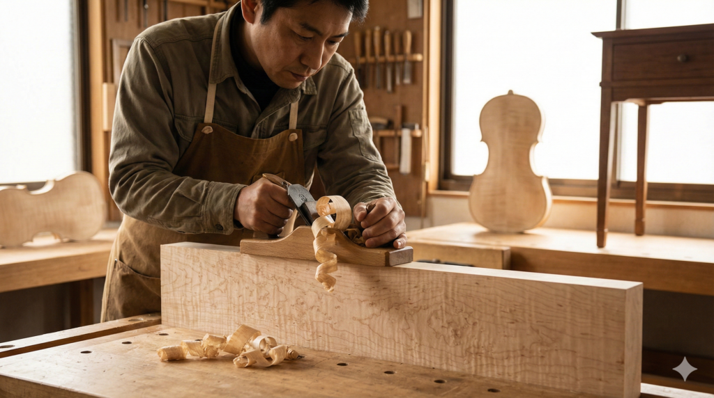 ここまでは植物としての楓について見てきましたが、ここからは「木材」としての楓の木の特徴に焦点を当てます。木材業界では一般的に「メープル材」と呼ばれ、その美しさと機能性から、世界三大銘木(ウォールナット、チーク、マホガニー)に匹敵するほどの人気と需要を誇ります。