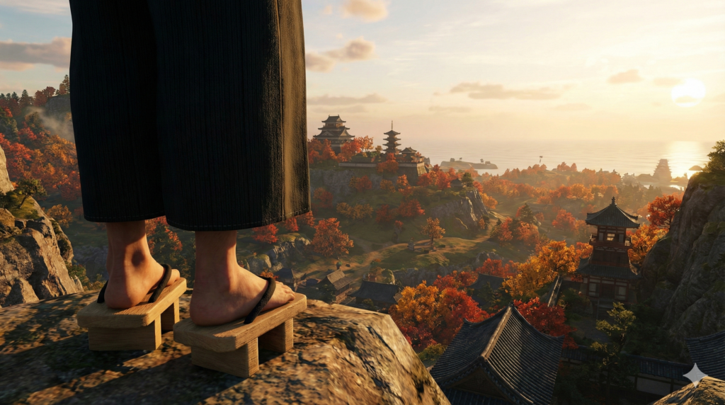 楓原万葉の身長を語る上で欠かせない要素が、彼が履いている「下駄(げた)」の存在です。彼の衣装デザインは日本の和装をベースにしており、足元には鼻緒のある下駄を着用しています。一般的なブーツや靴と比較して、下駄には「歯」の部分による物理的な高さが存在します。