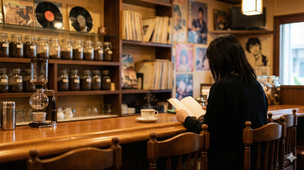 BGMには静かなジャズや、サイモン&ガーファンクルなどのオールディーズが流れており、決してうるさすぎず、会話や読書の邪魔にならない絶妙な音量で空間を彩っています。この心地よい音楽とコーヒーの香りが混じり合うことで、極上のリラックス空間が作り出されているのです。最近のモダンで無機質なカフェとは一線を画す、どこか懐かしく、包容力のある空間と言えるでしょう。