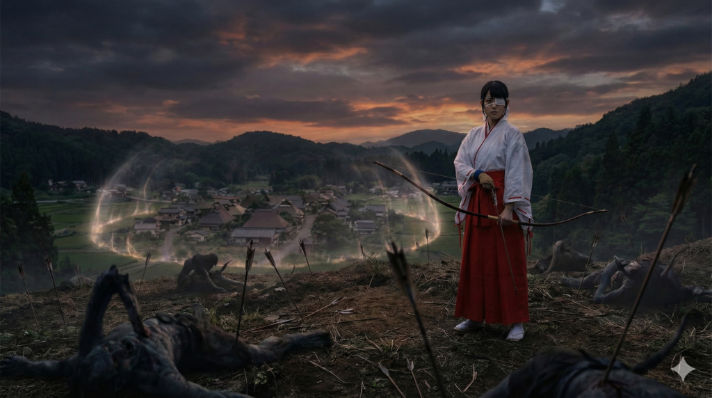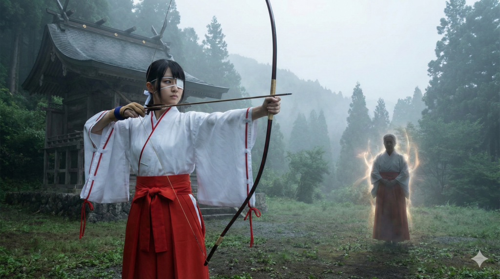 しかし、ここで注目すべきは、その後の楓の行動です。普通の子供であれば、そのような大怪我を負えば戦うこと自体に恐怖を抱き、巫女の道を諦めてもおかしくありません。しかし楓は、右目を失いながらも、決して巫女としての道を放棄しませんでした。むしろ、この傷は彼女にとって「姉と共に戦う覚悟」の象徴となったようにも見受けられます。隻眼となることは、弓を扱う巫女にとって距離感を掴むのが難しくなるなど、戦闘において大きなハンデとなります。それでも彼女は鍛錬を重ね、そのハンデを克服していったのです。このエピソードからは、若い頃から彼女が持っていた芯の強さと、精神的なタフさがうかがえます。