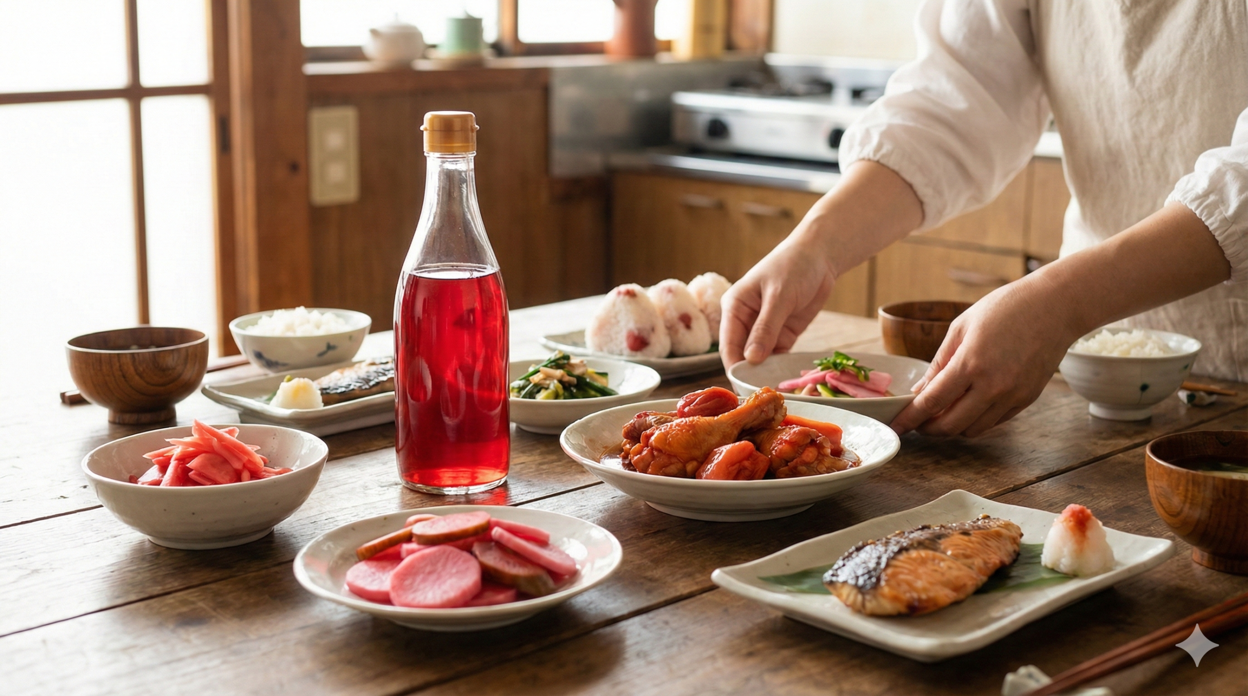 赤梅酢は、単なる調味料の枠を超え、健康食品としても掃除グッズとしても使える、まさに万能な液体です。