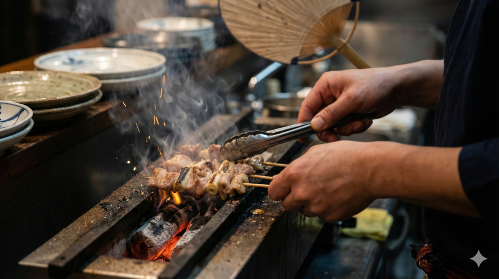 備長炭で焼き上げる串焼きの香ばしさと職人の技術